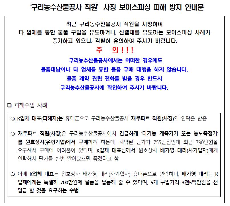 - 내용: 설명절을 맞이하여 도매시장 내 취약 유통인인 하역원 대상 격려품 전달과 노고 치하 및 애로사항 청취 등 공감·소통의 장을 마련하여 갈등 사전 예방 등 시장 활성화 도모